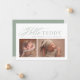 This two-photo birth announcement features an elegant sage green script "hello" beside a name or nickname. It also includes room for the baby's full name and other details along with a square and a horizontal photo. The classic green colour is perfect for announcing a sweet baby boy or girl and the backer is a coordinating stripe. Also available in other colours.