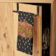 Front and centre is an elegant glitter pumpkin in feminine sparkling autumn shades. This durable waffle fabric paperless kitchen towel is adorned seam to seam with a girly metallic print faux foil gold raindrop icing drip texture over a black background, and features a seasonal appropriate trendy faux metallic glitter fall pumpkin in orange with an iridescent sparkly sheen golden script font typeface that reads "hello fall" making it the perfect autumnal embellishment for your kitchen, or a wonderful gift for a friend's.