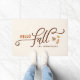 "Fall" in love with this modern and elegant autumn-themed doormat with pretty typography and simple colourful leaves. Personalise the template with your family name or custom text. Shown in a neutral colour palette of orange, brown, yellow, and tan on a cream background, but all colours are editable. © Kimbellished, LLC