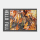 Stylish Fall front doormat features photograph of Autumn coloured fallen leaves in a puddle  with "Hello Fall" customisable text overlay