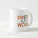 This vibrant fall artwork perfectly captures the cosy essence of the season with its playful typography and warm colour palette. The design features the bold phrase "Sweater Weather" in large, blocky letters that alternate in shades of orange, beige, green, and brown, evoking the changing colours of autumn leaves. The phrase "hello fall" is nestled in between, written in a flowing, cursive script that adds a touch of elegance and warmth to the design.