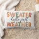 This vibrant fall artwork perfectly captures the cosy essence of the season with its playful typography and warm colour palette. The design features the bold phrase "Sweater Weather" in large, blocky letters that alternate in shades of orange, beige, green, and brown, evoking the changing colours of autumn leaves. The phrase "hello fall" is nestled in between, written in a flowing, cursive script that adds a touch of elegance and warmth to the design.