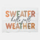 This vibrant fall artwork perfectly captures the cosy essence of the season with its playful typography and warm colour palette. The design features the bold phrase "Sweater Weather" in large, blocky letters that alternate in shades of orange, beige, green, and brown, evoking the changing colours of autumn leaves. The phrase "hello fall" is nestled in between, written in a flowing, cursive script that adds a touch of elegance and warmth to the design.