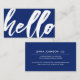 A lighthearted and fun navy blue business card featuring a "hello" script on the front. On the reverse side is a spot for your unique business information.