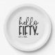 Personalised Hello 50, 50th birthday paper plates, change the text yourself to anything you want when your order.