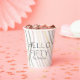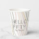 Hello fifty, simple, 50th birthday paper cup. Modern abstract wavy lines, modern font with customisable text elevates your party decor. Create a modern and unique 50th birthday party with the designs in the Modern Simple, Hello Fifty Soft Abstract Waves Collection in The Gathering Designs store.
