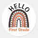 Hello First Grade Halloween teacher boho rainbow Classic Round Sticker