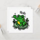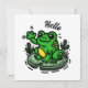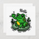 Hello! Cute hand drawn cartoon frog sitting on a lily pad.
