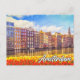 This travel postcard features a photograph of the beautiful and iconic city of Amsterdam, Netherlands, at sunset. This unique postcard would be ideal for best of friends and family.