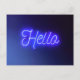Hello Fun Neon Blue Sign Bright and Cheerful Postcard