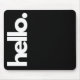 This fun minimalist black & white typography mouse pad is sure to put a smile on your face! Playful bold font and "Hello."