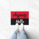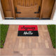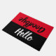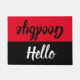 Black and white simple modern hello and goodbye door mat. When visitors come they will see hello and when they leave they will see goodbye.