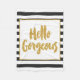 Hello Gorgeous Black & White Gold Glitter Stripes Fleece Blanket
