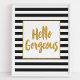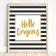 Hello Gorgeous Black & White Gold Glitter Stripes Poster