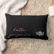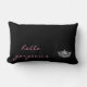This accent pillow is shown in black with a litho print of a pageant queens crown and hello gorgeous text.