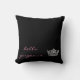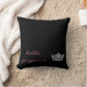 This accent pillow is shown in black with a litho print of a pageant queens crown and hello gorgeous text.