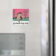 This groundhog is appearing for the first time in February to see if he can see his shadow. A bed full of grass with some plants are visible against a pink and rose coloured backround. A ladybug is crawling on a mound of grass. Groundhog Day is printed under the design. These magnets are available in assorted shapes and sizes. Also available in 2 different colours.