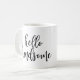 This mug features the phrase "hello handsome" in a modern black handwritten script.