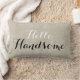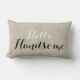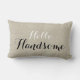Rustic yet contemporary chic design, with black script text. Motivational throw pillow with the words "Hello Handsome". A PRINTED beige linen photo effect background. Linen Look Custom Lifestyle Encouragement - Positive Advice - Throw Pillow - For Your Home Decor Solutions. Elke Clarke© More styles and colours available in our shop at www.zazzle.com/monogramgallery. Great for your bedroom, favourite chair, as fun decor in your family room or formal decorative addition to your living room.