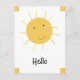 Big smiley happy sun in bright yellow with the word 'Hello'. Click personalise if you wish to change the text. Use this card for a birthday, just because, I love you or to cheer someone up and make them happy.