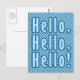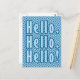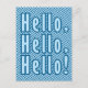 These t-shirts and other items are printed with the cheery expression "hello hello hello" in retro text.