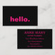 Hello Hot Pink Fuchsia Black Typography Custom Business Card
