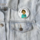 Introduce yourself to your patients with this easy to read name button. Cartoon drawing of a female nurse of colour in teal scrubs.