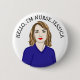 Introduce yourself to your patients or client with this easy to read name button. Cartoon drawing of a brunette Caucasian woman female nurse, doctor, physical therapist or caregiver in blue scrubs. Write me here through Zazzle if you want me to do one in your likeness!