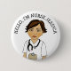 Introduce yourself to your patients or client with this easy to read name button. Cartoon drawing of a Caucasian brunette female nurse with glasses, physical therapist or caregiver in blue scrubs. Write me here through Zazzle if you want me to do one in your likeness!