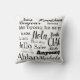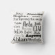 This super funky and unique throw pillow features greeting in different languages. Specifically, these are different translation of the English word "Hello." There are 18 different languages including English, Spanish, French, Korean, Japanese, Danish, German, Swedish, Greek, Persian, Italian, and others printed across the pillow. Each greeting is printed in a different font to give the pillow an artistic look. The same image appears on both the front and back.
