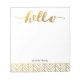 These notepads feature a "faux" gold foil design. They make a perfect gift or addition to your desk. Customise the notepad with one line of text using the template form.