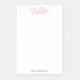 A fun, modern 4x6 Post-it® Note notepad design featuring quirky "hello" hand lettering at the top, with an area at the bottom for you to personalise the notes with your name.