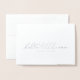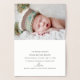 Modern elegant birth announcement featuring the words "hello little one" in a modern script in real foil on the front, optional line underneath (customise or delete field if desired) and birth info along with a photo inside.