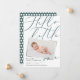 Hello little one modern photo birth announcement. Elegant script text, modern printed photo