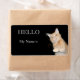 Smiling orange tabby cat with his paw out in greetings photo name sticker. Great for animal organisations etc