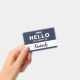 Introduce your team or event attendees with this welcoming and straightforward badge design. The layout features a classic two-tone, horizontal split with a clean upper section and a contrasting lower section that highlights a name in a stylish script font. It's a friendly and timeless design that makes introductions easy and memorable.