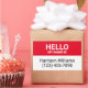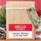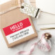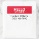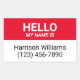 Hello my name is red and white custom name, contact info, identification, name tag rectangular stickers.