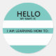 "Hello My Name Is" write on name tag with a second space for "I Am Learning How to:" Event guests can write in their name and what they are learning for a fun greeting and a great conversation starter. Light teal background can be changed to any color you like, and all text can be edited. Great for educational seminars, business events or gatherings of any kind.
