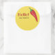 Hello name tag for a chilli cook off or any food event with hot peppers. The text says Hello! my name is, but you can edit it if you like. The yellow background colour can also be changed to another colour. The graphic is of a red chilli pepper. Participants, contestants, or guests can write their name and/or business name in the empty space on the matte finish sticker.
