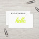 Hello Neon Chartreuse Yellow Black White Modern Business Card