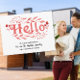 Featuring elegant red typography surrounded by leafy and floral elements, this card makes a charming and thoughtful way to say hello to your new neighbours. Personalise it with your family name, contact info, and any useful details to help neighbours reach you.