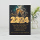 Hello New Year Black Gold Modern Custom Add Year Invitation 2024
