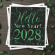 Hello New Year! New Year's Eve Green Black Sparkle Napkin