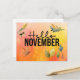 Hello November with Falling Leaves watercolor Holiday Postcard