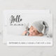 Simple and modern birth announcement card featuring a photo template with an overlay text in dark grey fonts that reads Hello, I'm Jackson (customisable with your baby's name). The white band on the lower part is personalizable with the birth stats in dark grey lettering.