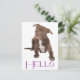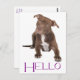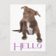 Brighten someone's day with a handwritten note! This fun Hello canine postcard features an image of a brown and white Pit Bull puppy dog highlighted against a crisp white background.