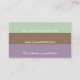 The front of this classy minimal design features a three colour palette with plum purple, chocolate brown, and mint green with the greeting hello in a simple white block font at the top right while in the lower left is a place for you to add your name and/or business. On the back the colour palette is flipped with three places for you to add your contact details. All elements of this design can be fully customised, so make it your own or leave it as is. Just add your details and you're done!