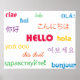 This bright and colourful poster says hello in many different languages including French, English, Spanish, Norwegian, Gaelic, Chinese, German and many more!