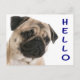 Brighten someone's day with handwritten note! This fun Hello canine postcard features a graphic image of a Pug puppy dog highlighted against a cream white background.