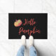 Orange black Hello Pumpkin fall indoor outdoor doormat. Country rustic autumn home decor. Image copyright Marg Seregelyi Photography.